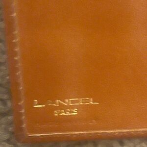 The Lancel Men's/Unisex Card Holder/Compact Wallet in Brown is a stylish and functional accessory for men. Made of leather, this bifold wallet features slots for credit cards and a logo accent. The compact design makes it convenient for carrying in a pocket or bag, making it a practical choice for keeping your personal information secure on the go