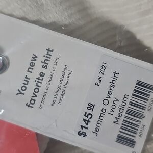 Marine layer Jemma Cord Overshirt in Ivory mew with tag
