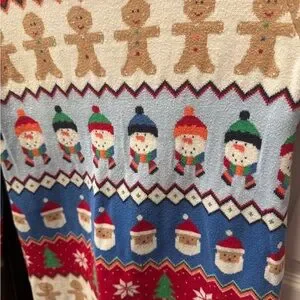 1- multicolor with gingerbread men, snowmen, Santa pattern.