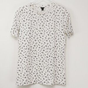 Ann Taylor Cherry Tee Short Sleeve 100% Cotton Black White Size Medium New
