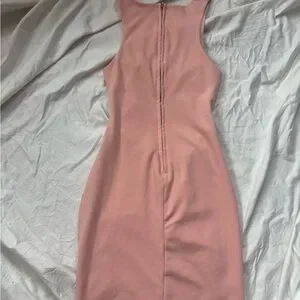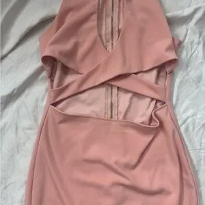 Chic backless design with cut-out details. Soft blush color. Perfect for stylish outings.