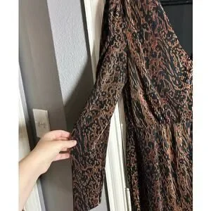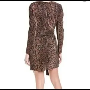 WAYF $138 Riverside Puff Sleeve Black Brown Animal Print Dress Size XL NO BELT