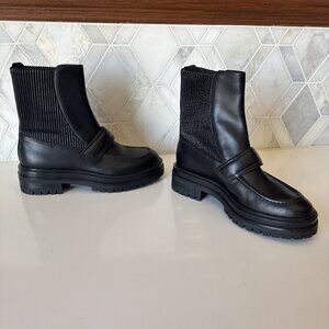 Gianvito Rossi Size 36/6 Black Calfskin Pull On Ankle Boot Lug Sole Eco Stretch