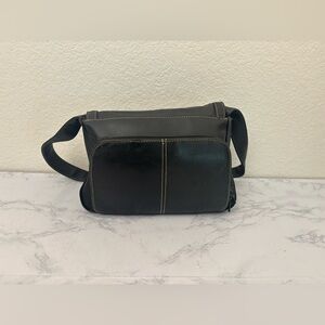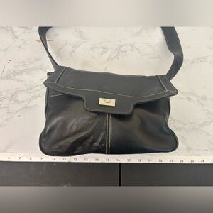 Hush Puppies Leather Handbag Shoulder Bag Black Vintage 80s