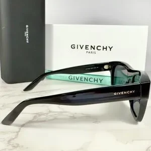 Authentic Givenchy Black Acetate Framed Sunglasses crafted from black acetate frames, gold toned hardware and with black lenses that protect your eyes from harmful UV rays. They have the designer’s logo spelled out on the outside stems. These sunglasses are in excellent pre-owned condition and come with the hard case and the box. Please observe all photos as part of their condition.
