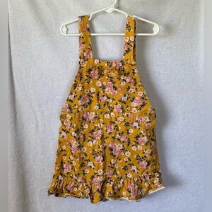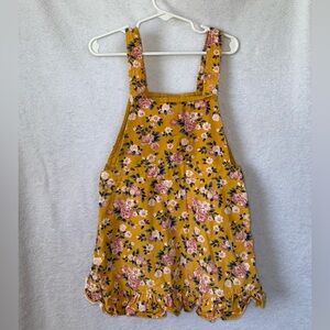 Girls size 5 yellow floral overall dress