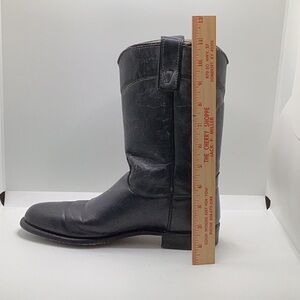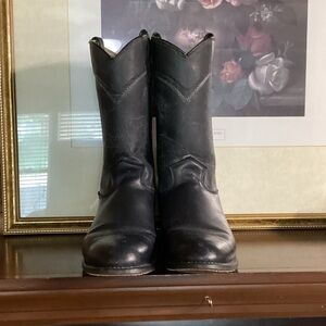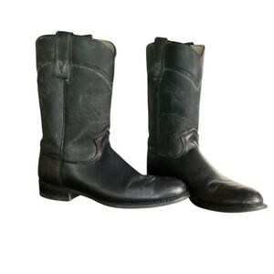 Texas Brand Boots. Navy. The leather has cracking but not peeling. Decent wearable condition. Made in U.S.A. Size 7.5. Style 4405