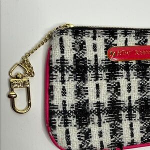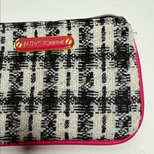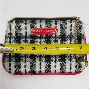 Betsey Johnson Black and White Plaid Clutch with Pink Accents
