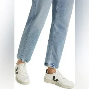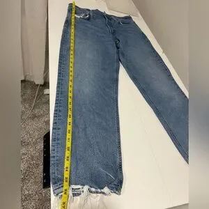 Agolde 90s jeans, Agolde loose fit denim, Agolde size 28, Agolde light wash jeans, Agolde raw hem, frayed hem jeans, vintage denim, relaxed fit jeans, boyfriend jeans, straight leg jeans, casual streetwear, model-off-duty jeans, capsule wardrobe denim, luxury jeans