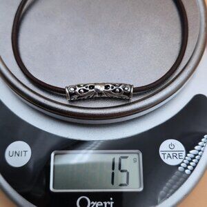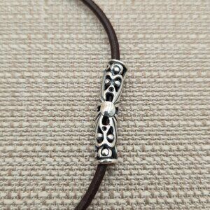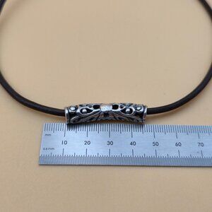 16 Inch Sterling Silver & Leather Unique Floral Pendant Necklace B690