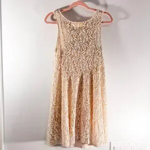 A romantic and flirty sleeveless mini silhouette featuring a delicate stretch floral lace overlay in soft alabaster/off-white. Fully lined with a color-coordinated lightweight rayon slip featuring adjustable spaghetti straps for a custom fit, coverage flexibility, and optimal comfort. Designed as a pullover with no closures, this A-line swing dress exudes effortless bohemian elegance. The slip is fully removable/detachable and snaps into the lace overlay at the shoulders.
