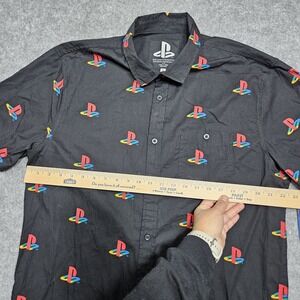 Playstation Button Up Shirt Mens Size XL Black PS AOP Short Sleeve Collar