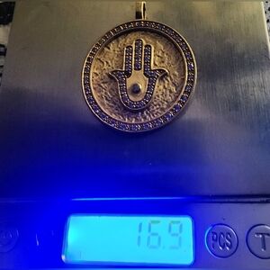 Gold Tone Hamsa Pendant with Crystals By SHELIA FAJL THAILAND