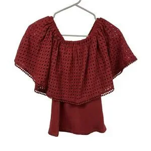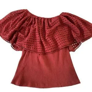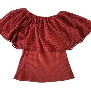 Anthropologie The Odells Off the Shoulder Eyelet Brick Color Blouse, Small
