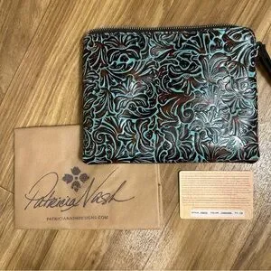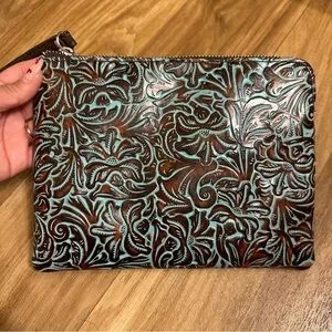 PATRICIA NASH Cassini 100% LEATHER Wristlet in Tooled Turquoise / Brown P349133