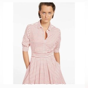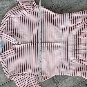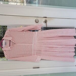 Marella Red Striped Collared Quiche Shirt Dress With Pockets Sz 14