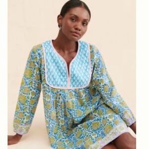 Elegant Floral Long Sleeve Dress in Blue and Green. NWOT