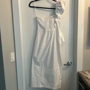 ANTHROPOLOGIE BHLDN Wren White One-Shoulder Ruffled Midi Stretch Dress Elastic S