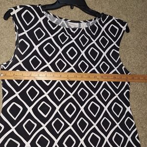 Stylish sleeveless midi dress (comes to my knees) with bold diamond pattern. Perfect for versatile wear. Polyester/Spandex blend.