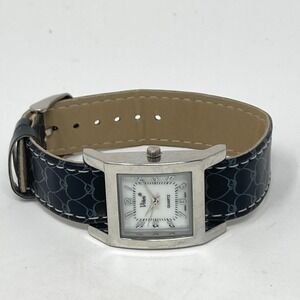 Vivani Watch Women 25mm Silver Tone MOP Dial Black Heart Band New Battery 8"