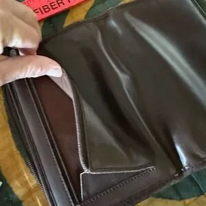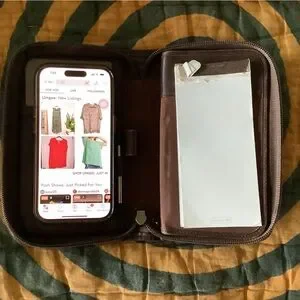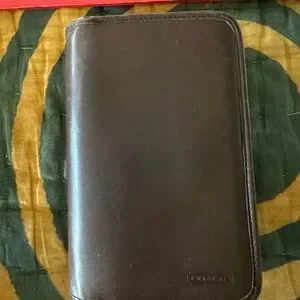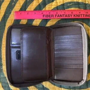 Vintage, one-owner authentic leather Coach wallet. Room for phone and cash (or checkbook if you are old school), ID, credit cards and more. Includes stylus and partially used notepad. Has back zippered pocket and holder for a pen.