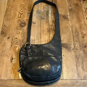 HOBO International Vintage Black Unisex Crossbody Sling Bag. Perfect for everyday use with a spacious main compartment, with zippered pocket. Front zippered compartment. Soft leather