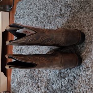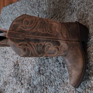Rugged and stylish cowgirl boots. Features intricate stitching. Ideal for everyday wear.