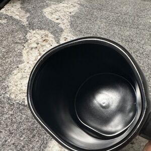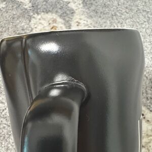 Enjoy your favorite beverage in this sleek black ceramic mug. Perfect for any kitchen or office setting. In good preowned condition. The “Gulp” mug seems to have an imperfection with the handle on the bottom part. You can “hear” it. Seems sturdy at the moment but if not careful and after much use….i believe this will eventually break so I am including this one at no cost.