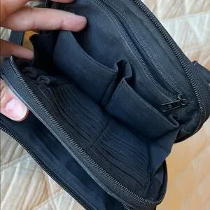 Sleek black leather crossbody bag with adjustable strap. Perfect for everyday use.