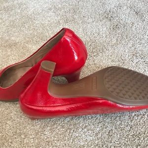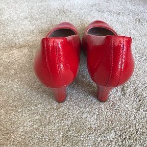 Elegant red heels with a glossy finish. Comfortable and stylish design.