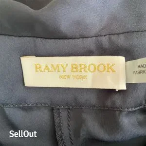 This Ramy Brooke one-piece jumpsuit is designed for women and comes in a regular size M. It features a solid blue color with a sleeveless, halter neck style and a deep V-neckline. Made from high-quality material, it has a wide-leg fit and a pullover closure. Ideal for spring, this jumpsuit is perfect for party or cocktail occasions. The item is pre-owned.