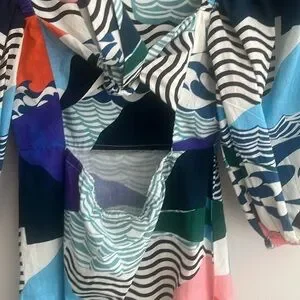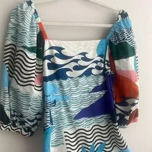 Oliphant Dress Puffed Sleeve Cutout Bow Cotton Abstract Mini Size Small