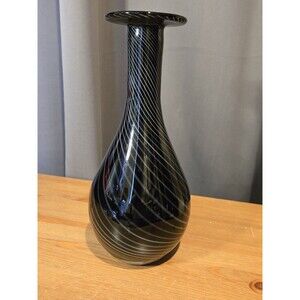 Vintage Murano Italy MCM Vase Black W/ Gray Swirls, 11.5” H