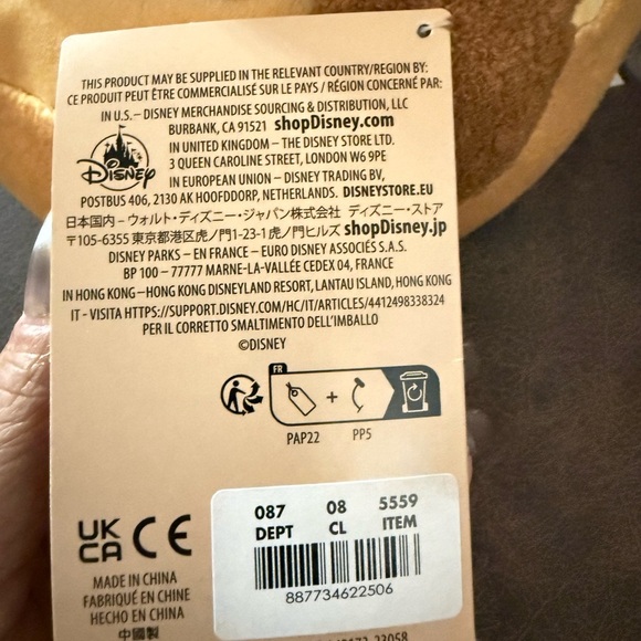 Charming Disney plush with brown and green accents. Soft and cuddly design.