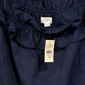 LOFT Navy mini with ruffle neckline Off shoulder Dress Vacation Dress Cocktail