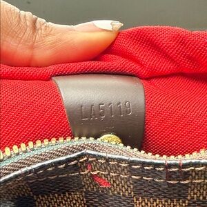 Chic Louis Vuitton satchel in iconic Damier Ebene pattern. Features dual handles and detachable strap. Timeless elegance for any wardrobe.