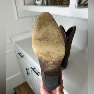 Pre-owned and in good shape. Some scuffing on the toe area (see images). The boots remain sturdy and wearable, with lots of life left.