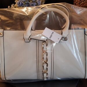 Chic Aldo satchel in ivory with striking gold chain accents. Ideal for stylish outings. Strap included still in the wrapping (pictures will be included)