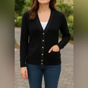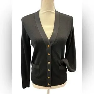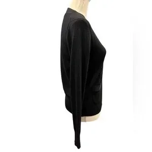 J.Crew Merino Wool Black Cardigan Sweater Women’s Size S Gold Button Pockets