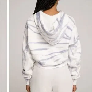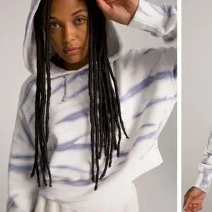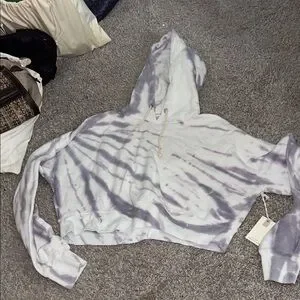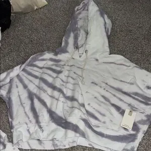 Stylish cropped hoodie with a purple tie dye design. Ideal for relaxed outings.