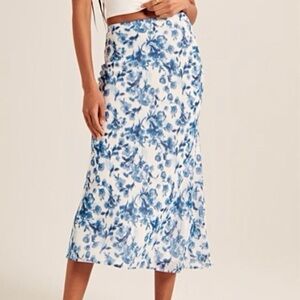🆕-Abercrombie & Fitch Chiffon Column Blue Floral Midi Skirt. Size: Small Petite