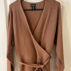 Nicole Miller Tan Long Sleeve Wrap Sweater Dress L