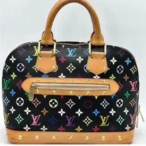 Louis Vuitton Murakami Alma PM Black Multicolor Satchel with Lock & Key Genuine