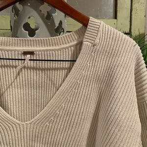 Free People Ribbed Cream V-Neck Cozy Sweater Size Large. Great used condition.