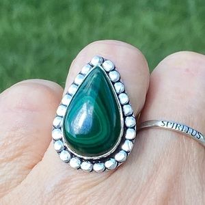 Large genuine Malachite ring .925 Sterling Silver.