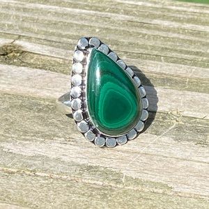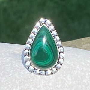 Large genuine Malachite ring .925 Sterling Silver size 7.5
