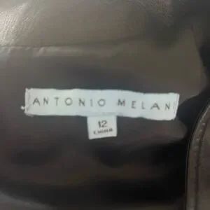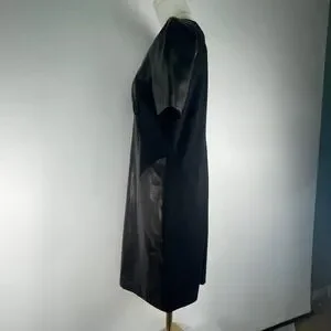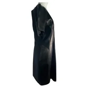 Antonio Melani leather v-neck stretchy black dress, sz 12 sleek, nylon sides