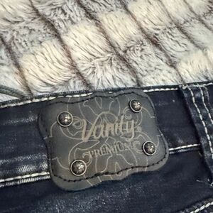 Vanity Dark Blue Straight Leg Jeans with Embroidery