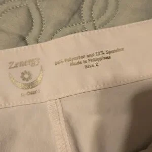 Stylish white cropped pants. Perfect for casual wear. side zipper pickets. chicos zenergy size 2, see pictures for measurements. very good used condition.