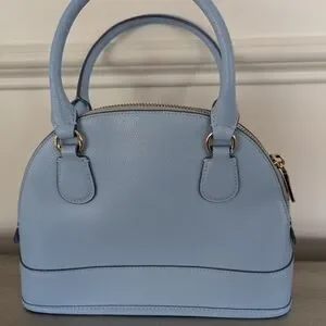 Elegant light blue satchel. Features gold-tone hardware. Includes detachable strap.